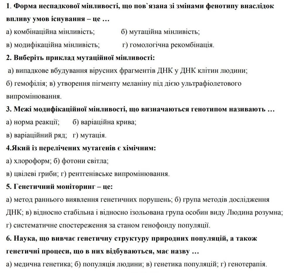 Відповідь:1. В 2. А 3. А 4. А 5. Г 6.В