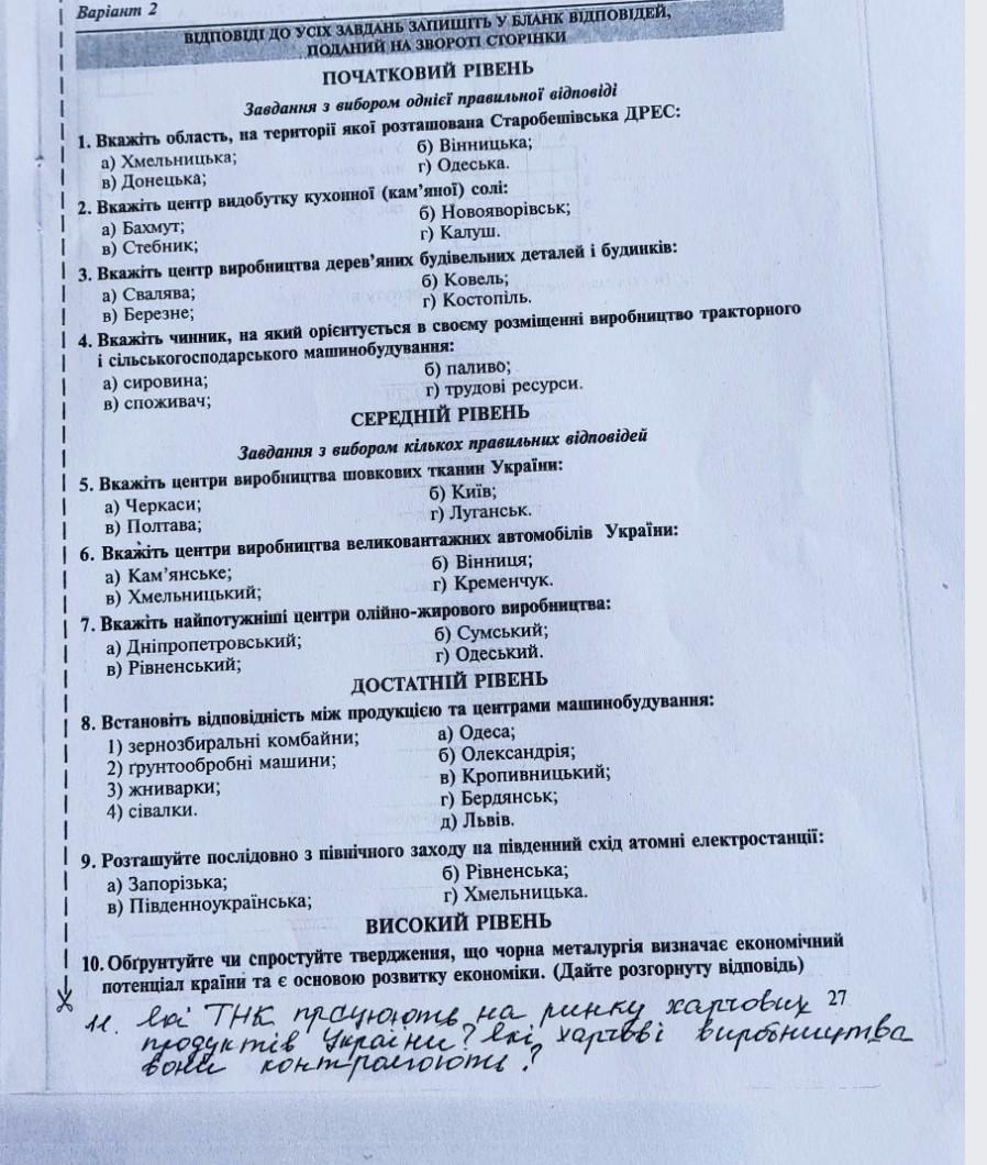 1 9. Розташуйте послідовно з північного заходу на південний схід атомні електростанції: б) Рівненська; г) Хмельницька. а) Запорізька; в) Південноукраїнська; ВИСОКИЙ РІВЕНЬ ODKONN шо чорна металургія визначає економiчний