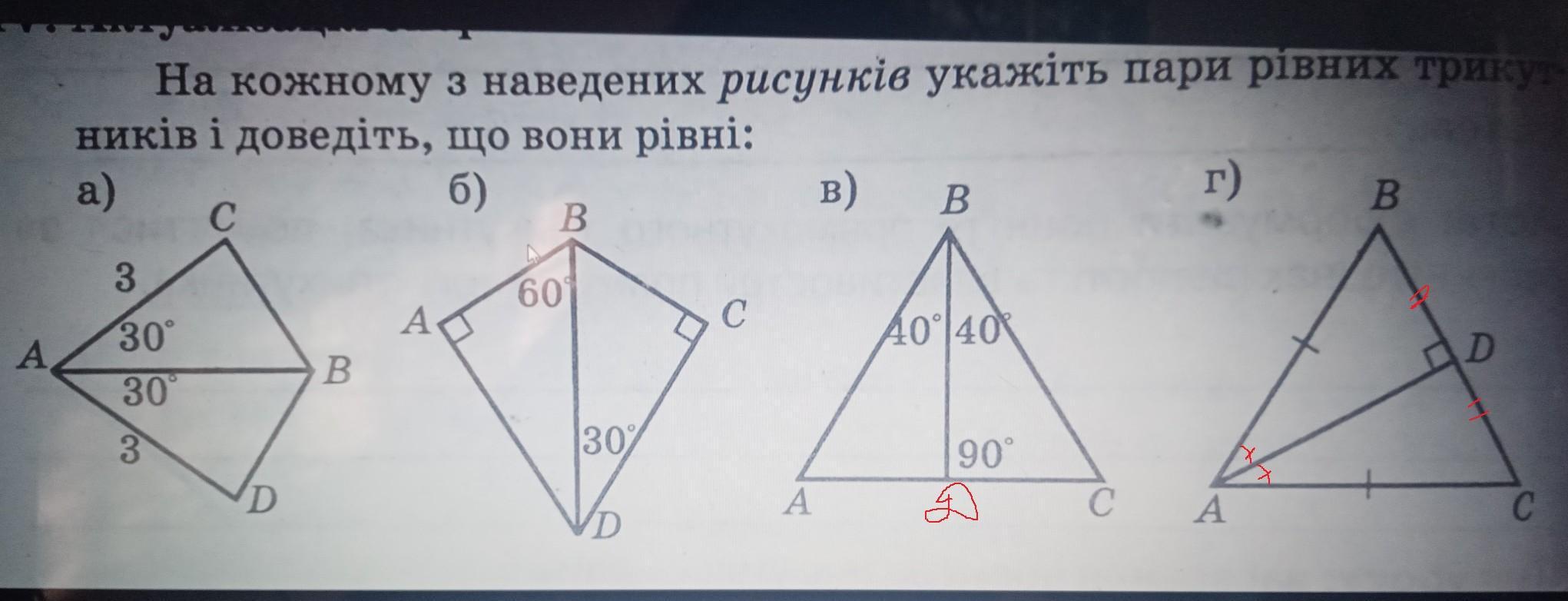 г) РозглянемоΔАВС, так як АВ=АС, то трикутник є рівнобедреним