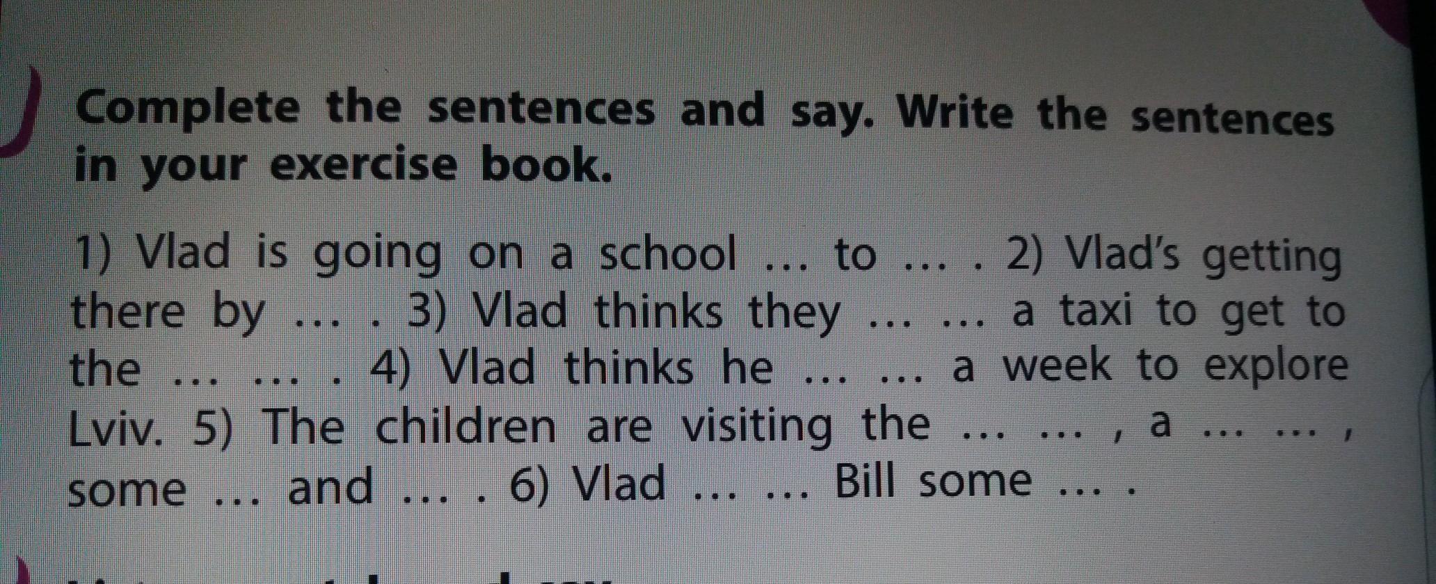 5. The children are visiting the central square, a picture gallery, some museums, and churches.