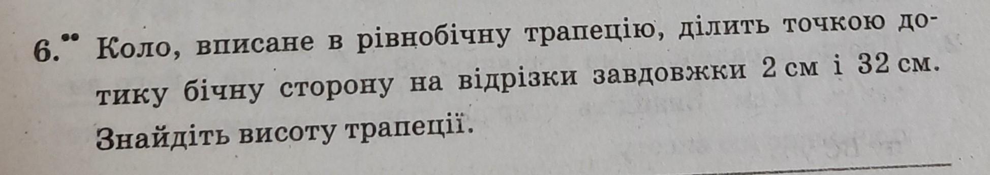 а=2*2=4 см; c=2*32=64 см; h=√(34²-((c-a)/2)²)=√(34²-((64-4)/2)²)=16 cм;