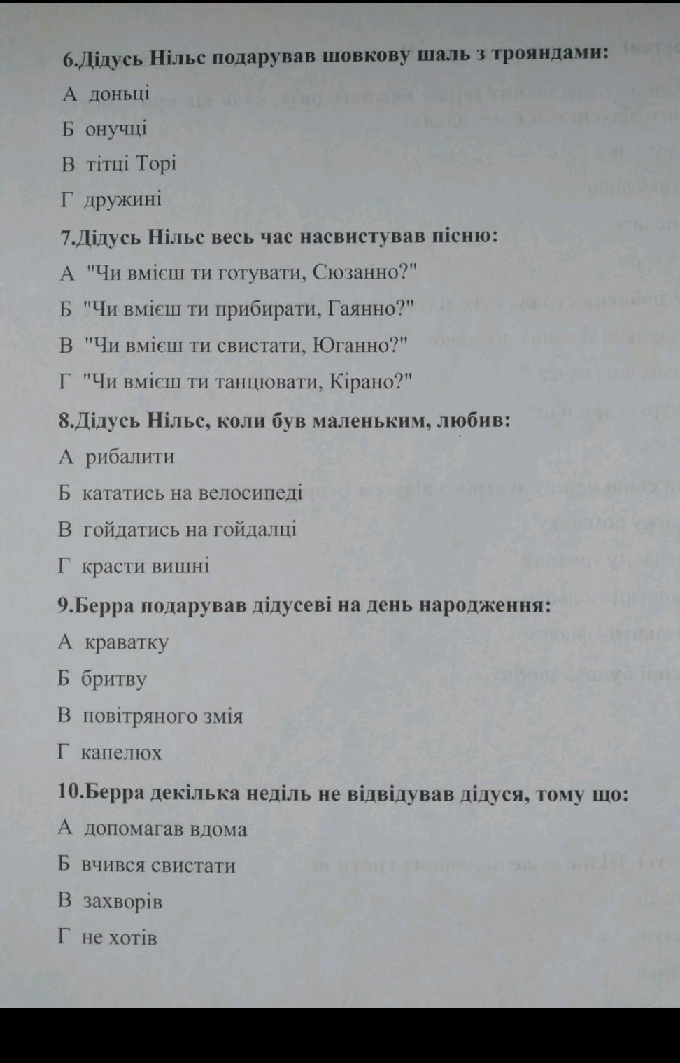 6. Г, 7. В, 8. Г, 9. А, 10. Б.