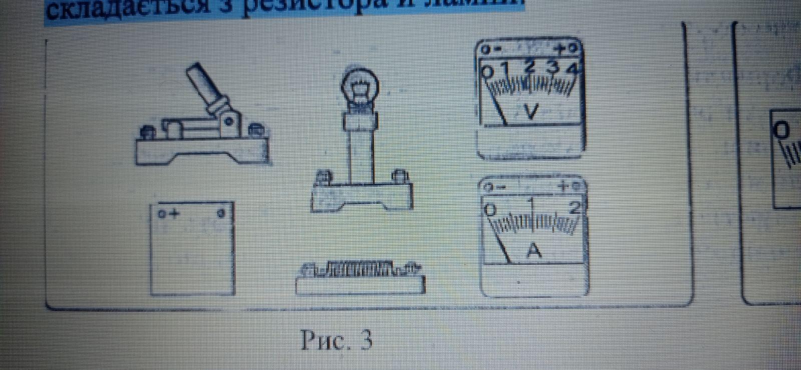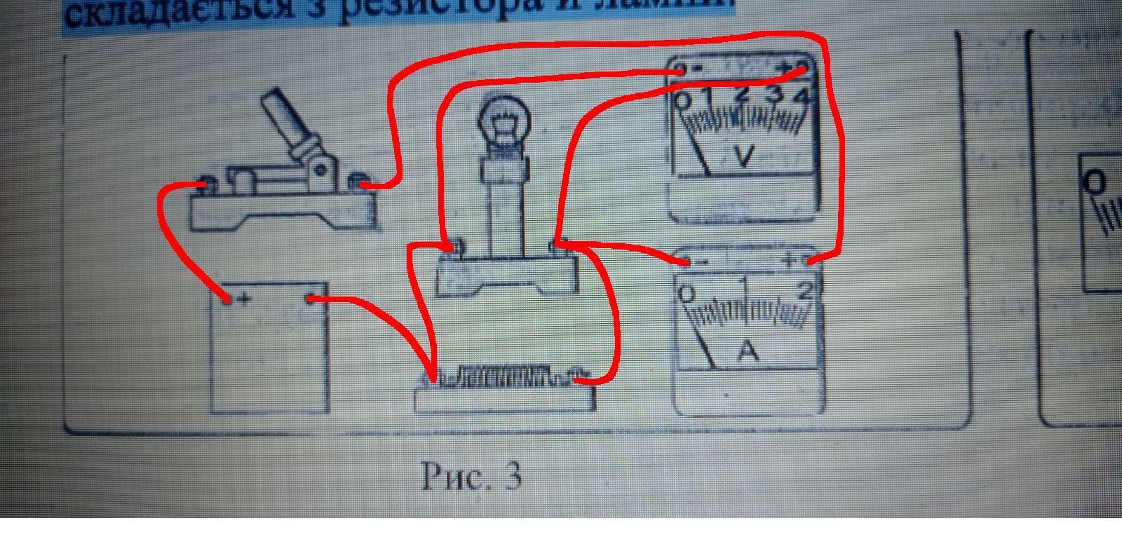 4. Покажіть на рис. 3, як потрібно з’єднати прилади, щоб виміряти