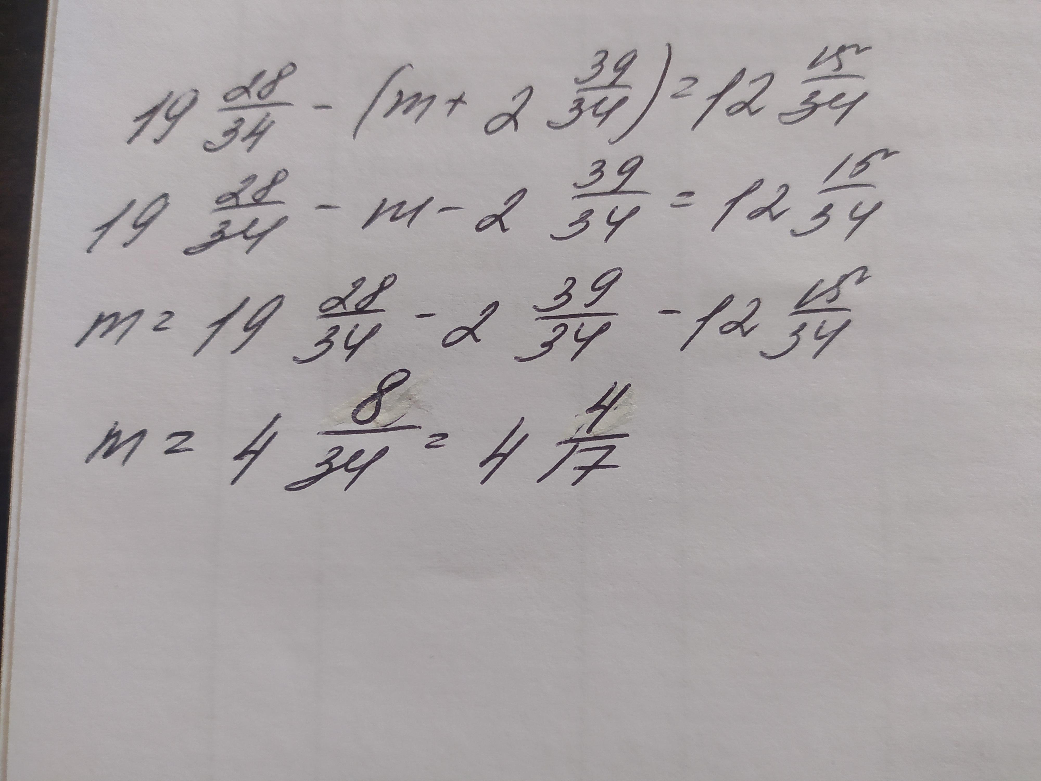 19²⁸/³⁴– (m+2³⁹/³⁴) =12¹⁵/³⁴ рівняння​