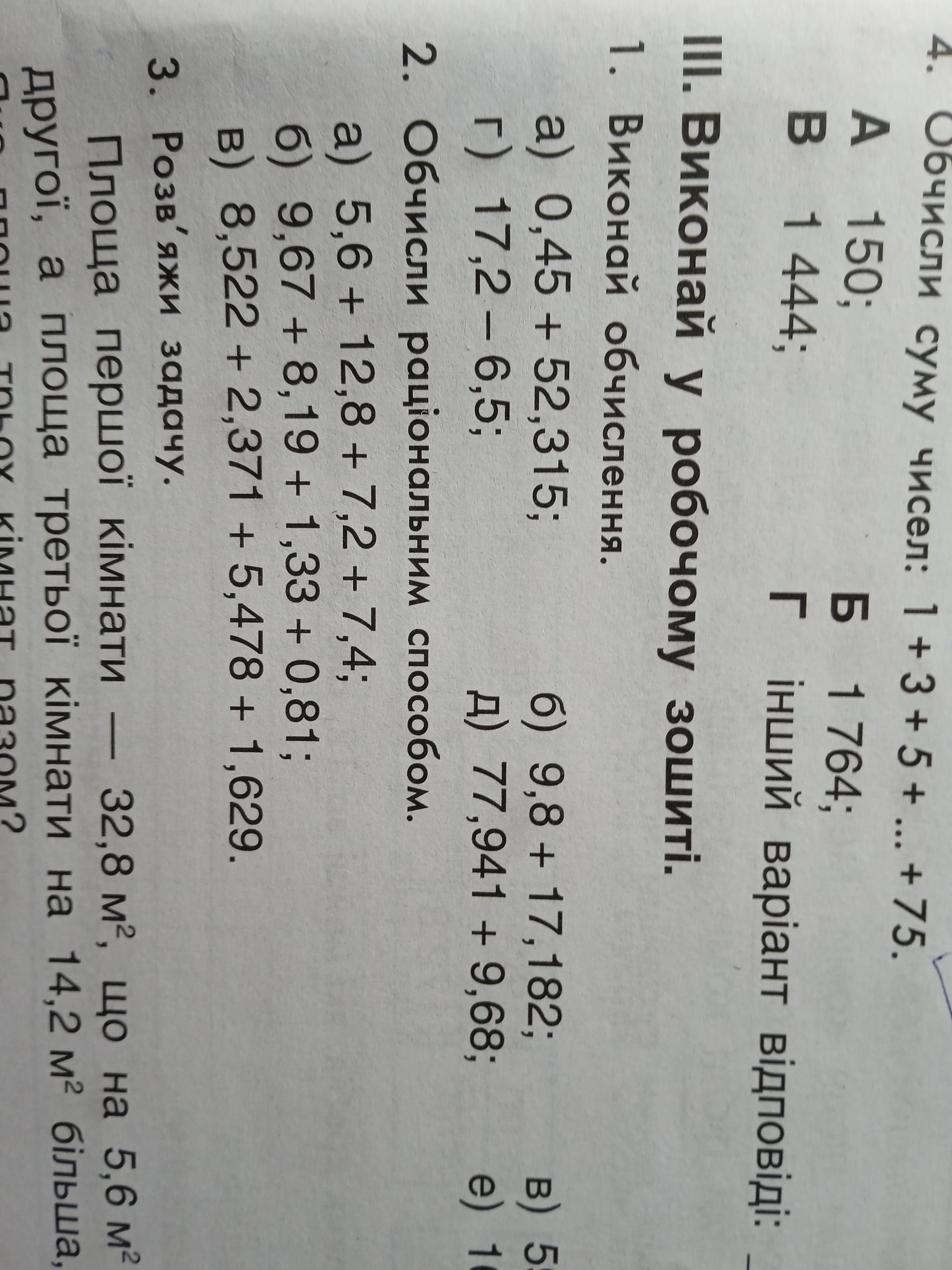 4. В (сумма всіх непарних чисел до 75 дорівнює 1444).