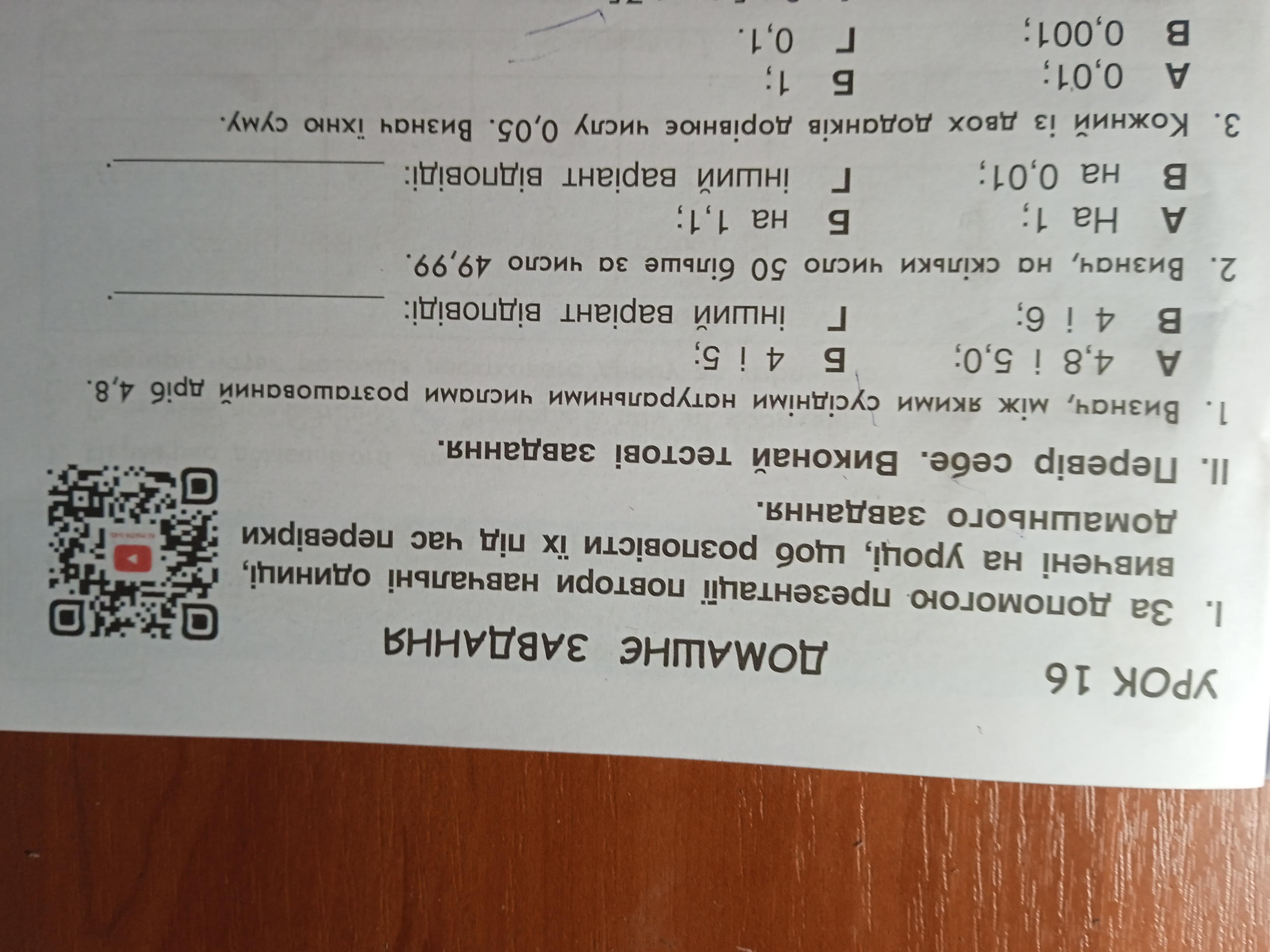 1. Б (4 і 5 це сусідні натуральні числа, між якими розташований дріб 4,8 тому що 4,8 більше ніж 4 але менше за 5).