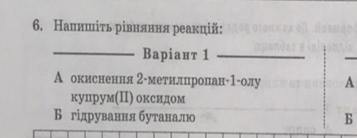 А. Окиснення 2-метилпропан-1-олу купрум(ІІ) оксидом: