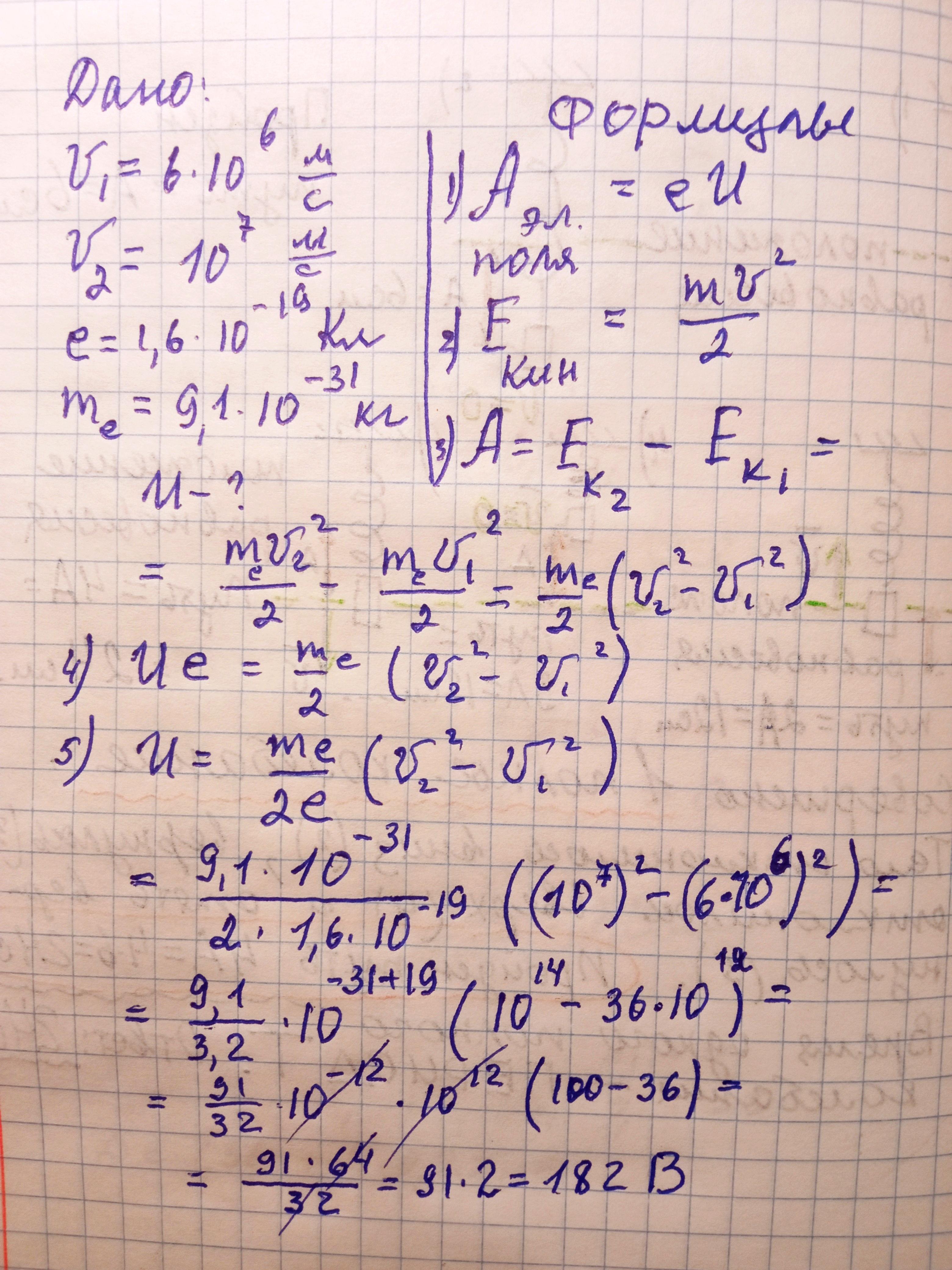 Яку різницю потенціалів повинен пройти електрон, щоб збільшити свою швидкість з 6*106 м/с до 107 м/с? (не чатгпт)