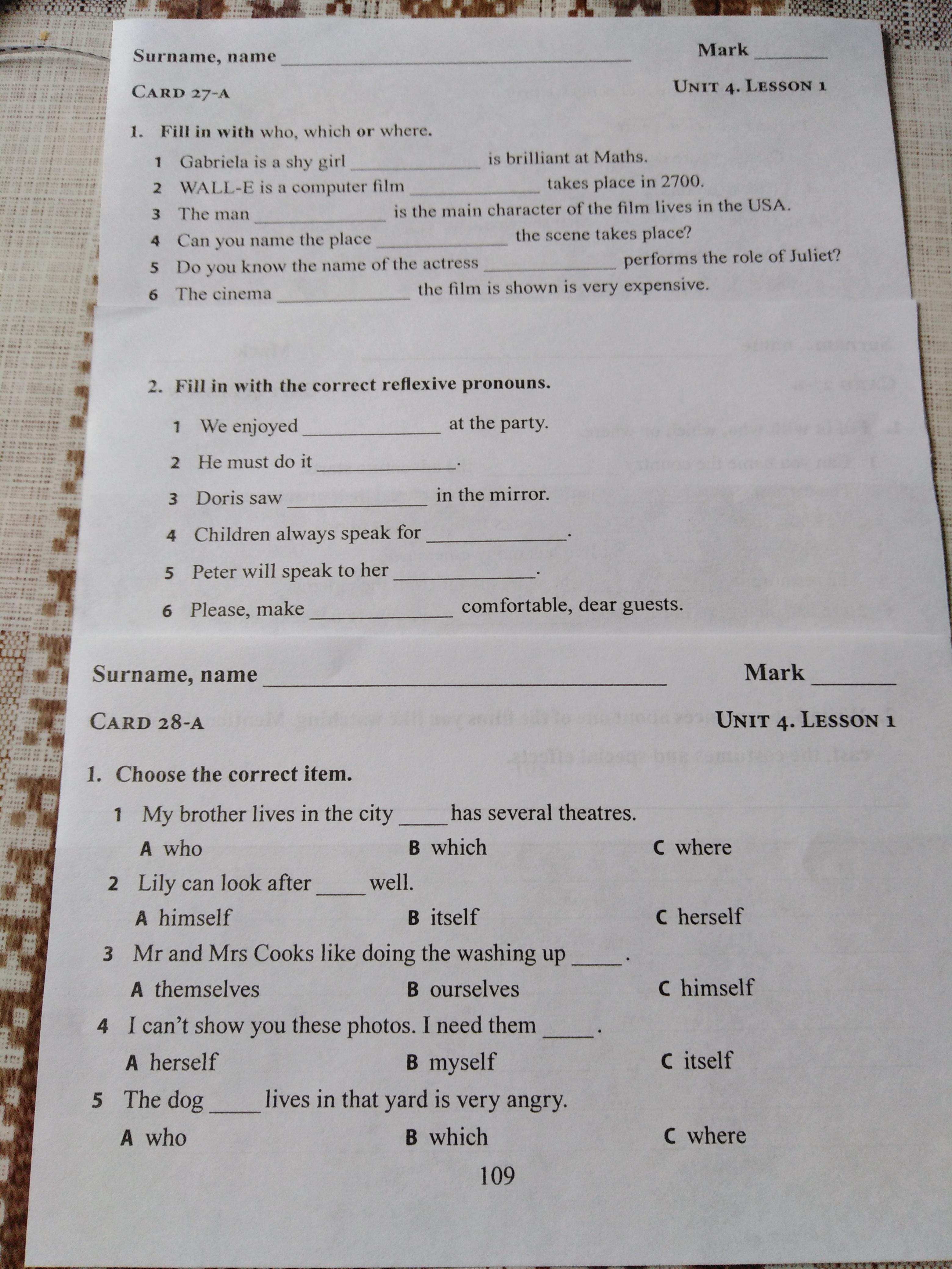 2. Fill in with the correct reflexive pronouns
