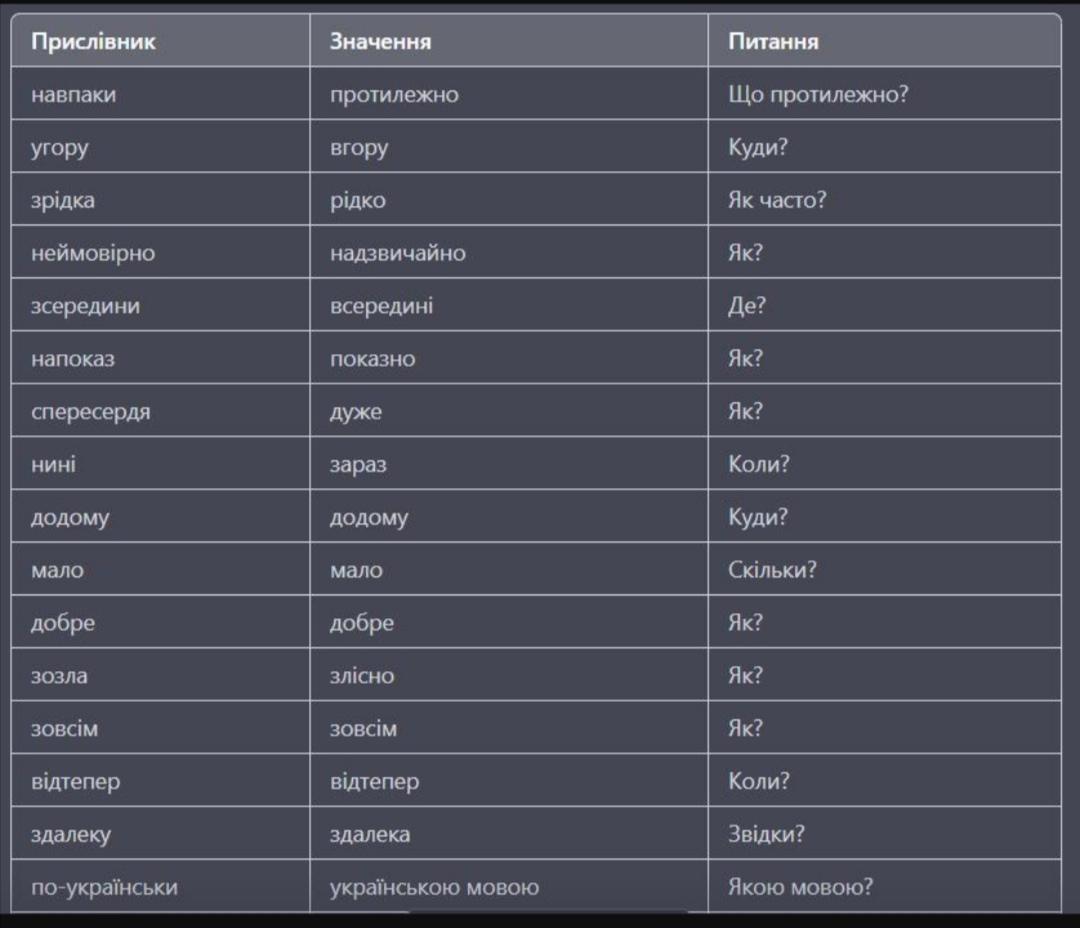 До яких розрядів відносяться прислівники: навпаки, угору, зрідка, неймовірно, зсередини, напоказ, спересердя, нині, додому, мало, добре, зозла, зовсім, відтепер, здалеку, по-українськи, довіку, верхи.