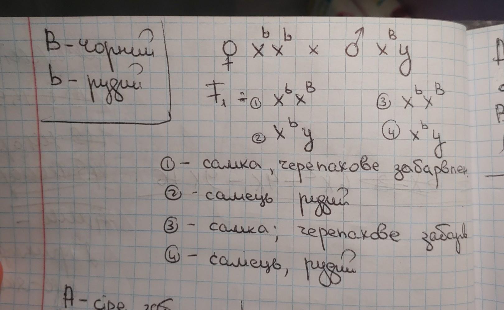 ген, який визначає забарвлення шерсті котів, розташований у Х-хромосомі. Один з його алелів визначає чорне забарвлення, а другий - руде. У випадку якщо організм є гетерозиготою за цим геном, то його забарвлення є черепаховою. який колі шерсті матимуть нащадки від схрещування чорного кота й черепахової кішки