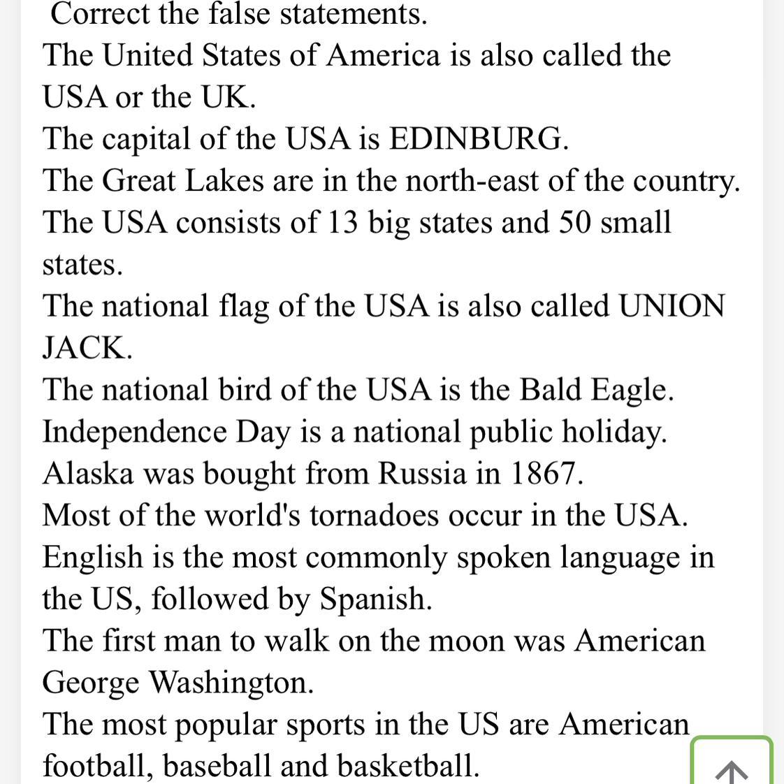 The capital of the USA is EDINBURG. (False, the capital of the USA is Washington D.C.)