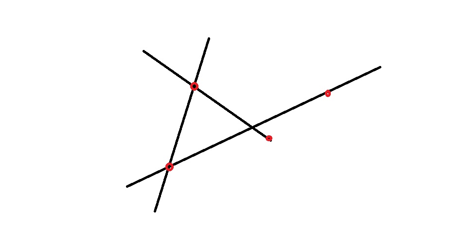 Илья продолжил стороны треугольника и каждой из трех образовавшихся прямых отметил по 2 точки. Всего он отметил 4 точки. Как он это сделал?