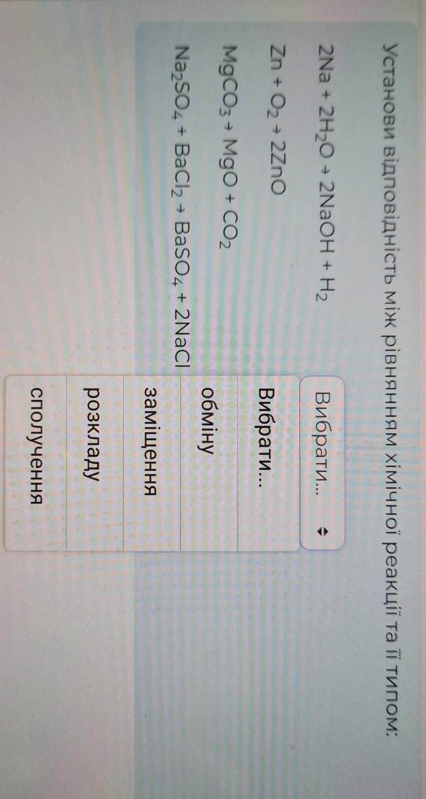 Установи відповідність між рівнянням хімічної реакції та її типом: