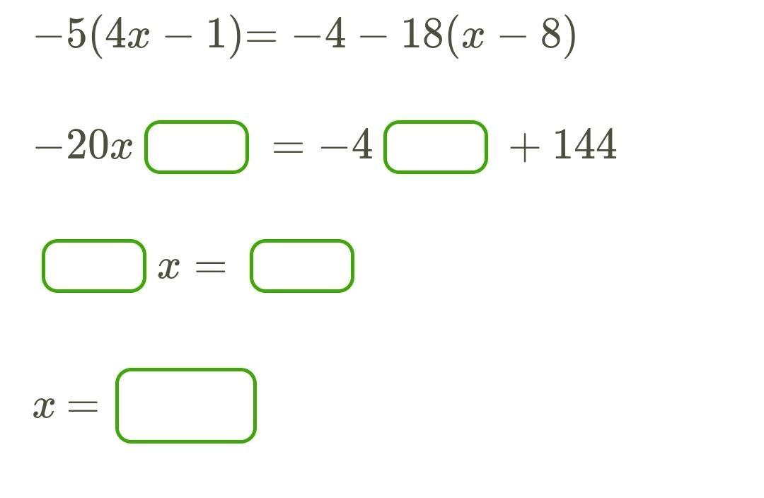 -5 (4х - 1) = -4 - 18 (х - 8)