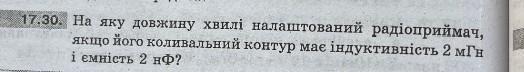 На яку довжину хвилі налаштований радіоприймач, якщо його коливальний контур мае індуктивність 2 мГн i емність 2 нф?
