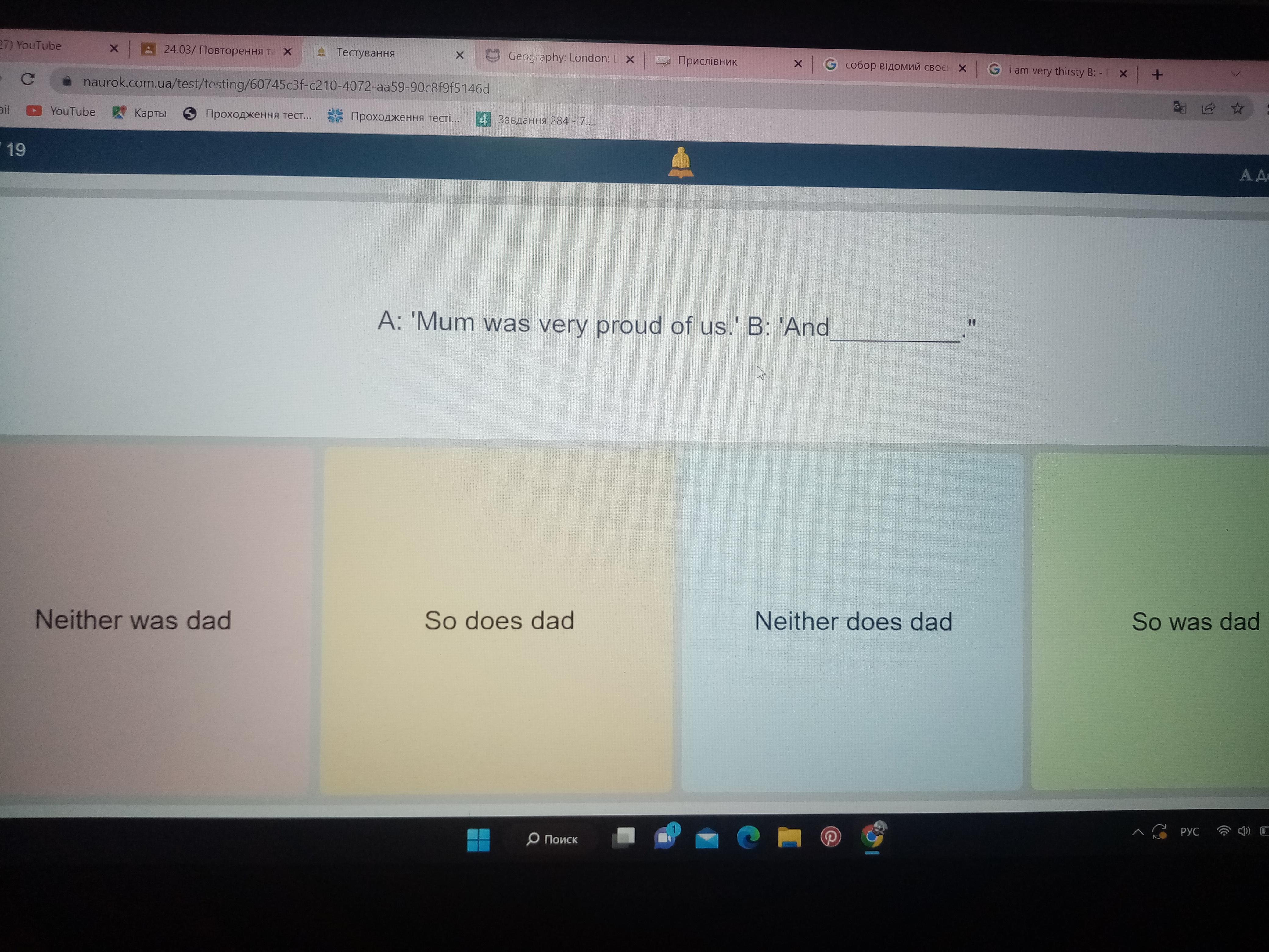 B: "Neither was dad."