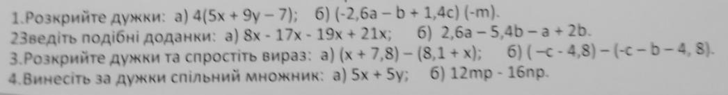 а) 4(5х + Эу - 7) = 20х + 4у - 28