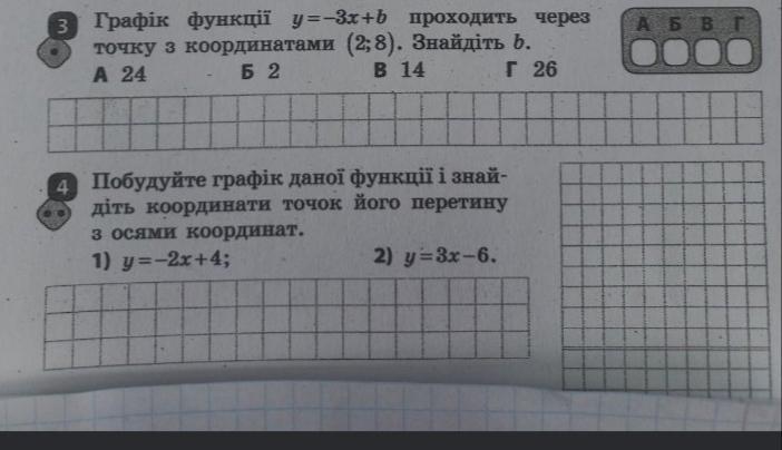 3. График функции y=-3x+b проходит через точку с координатами