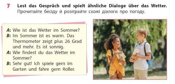 B: Im Winter ist es kalt und gibt auch Schnee. Das Wetter ist ungefähr -1 oder -5. Man muss sich warm anziehen.