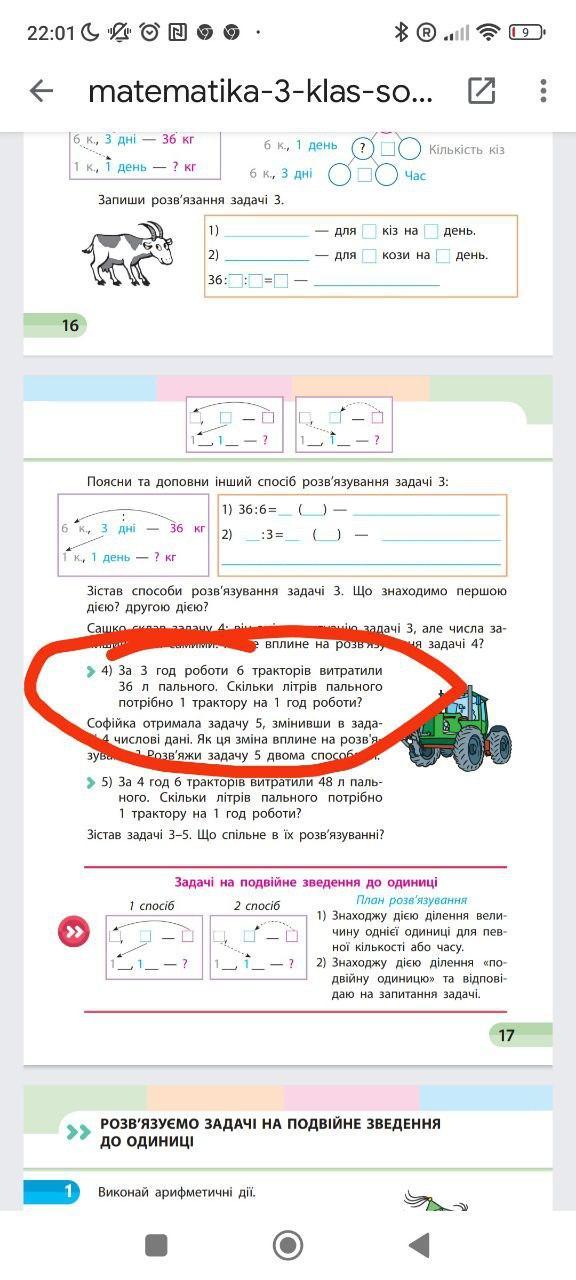 36:6=(л) палатного один трактор за три години это 1 действие?