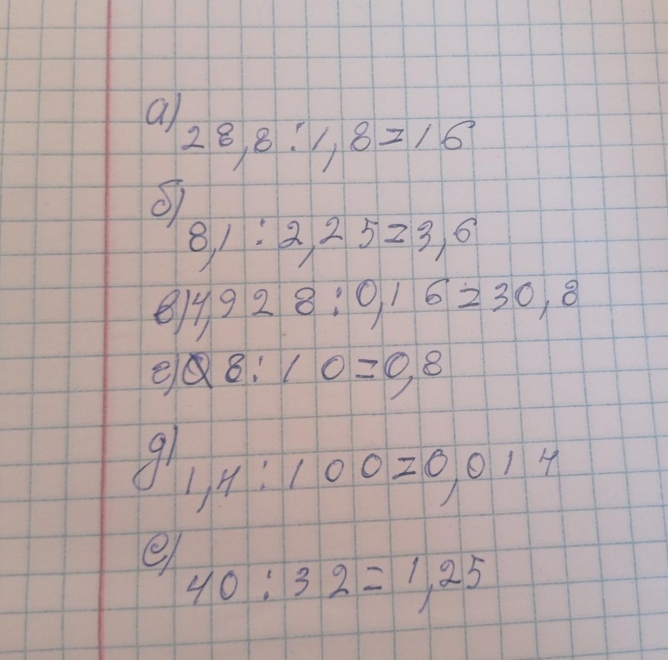 а) =16; б)= 3,6; в)=30,8; г)=0,8; д)= 0,014; д)40:32=1,25