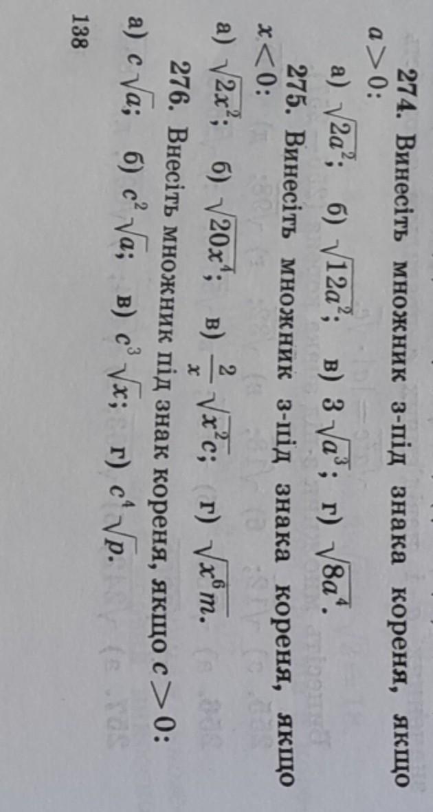 б) √( 12a² ) = 2*| a |*√3 = 2a√3 ; г) √( 8a⁴ ) = 2| a² |√2 = 2a²√2 .