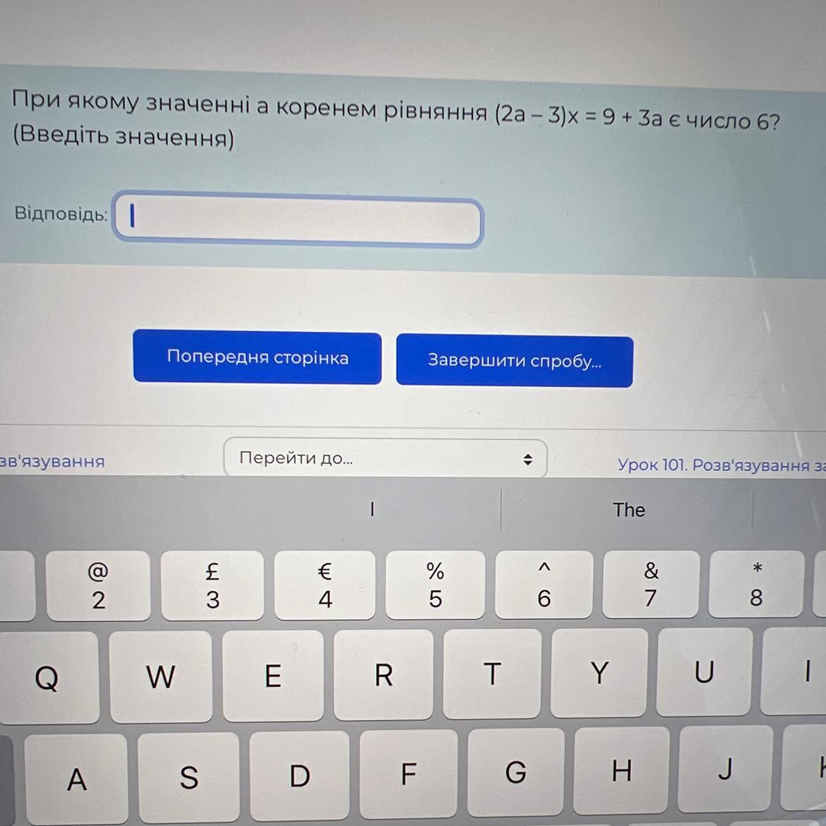 при якому значенні а коренем рівняння (2а- 3)x= 9 + 3а є число 6? (Введіть значення)