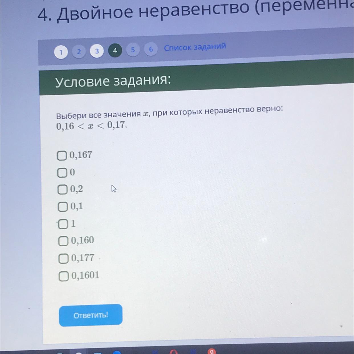 Из данного неравенства следует, что x должно быть больше, чем 0,16, и меньше, чем 0,17.