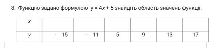 В завданні помилка, якщо треба заповнити таблицю. Треба знайти область визначення (х), а не область значень (у) - вони і так відомі.
