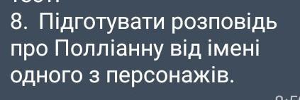 я тут пишу про Поліанну вона була дуже весела дівчинка вона усім допомагала ,та ще у неї померли батьки .Потім її взяла до себе тітонька яка посварилася з мамою Полліани за те що вона вийшла заміж за якогось дурня .Потім виявилося коли Полліани поспішала до дому її збила машина .