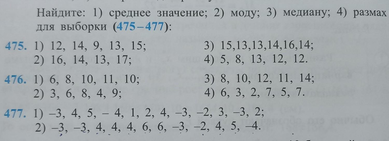 медиана- число посередине, если в выборке четное число, то 2 числа посередине складываются и делятся на 2