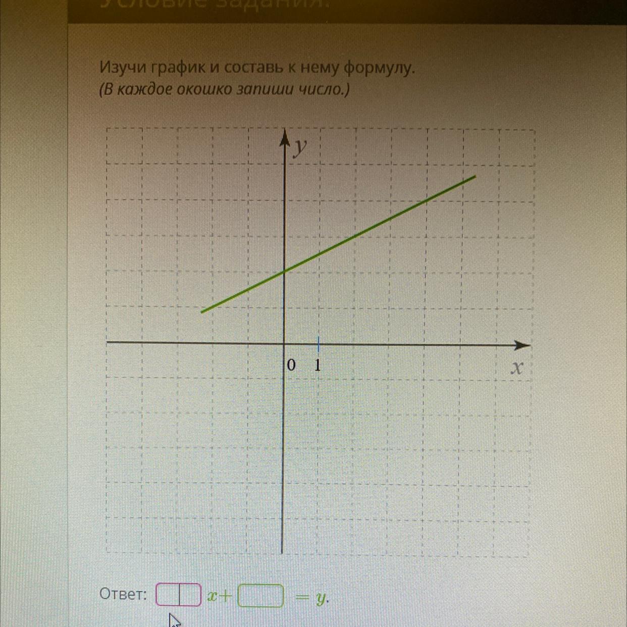 Объяснение: Пусть коэффициент, стоящий перед х, будет k, а свободный член -- b. Можно заметить, что на графике показана прямая, задающаяся формулой y = kx+b.