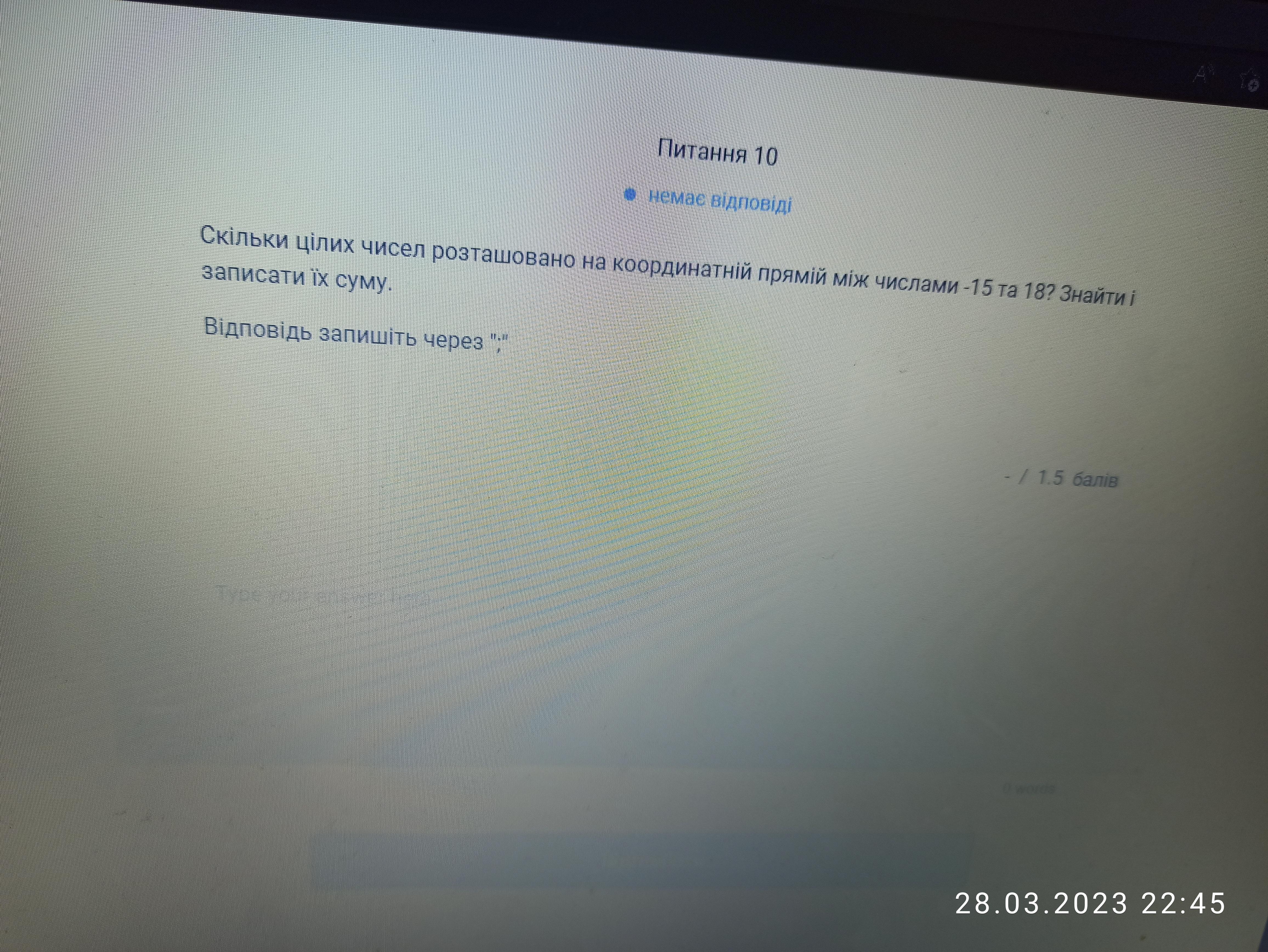Сума всіх цілих чисел, що розташовані на координатній прямій між числами −15 та 18: