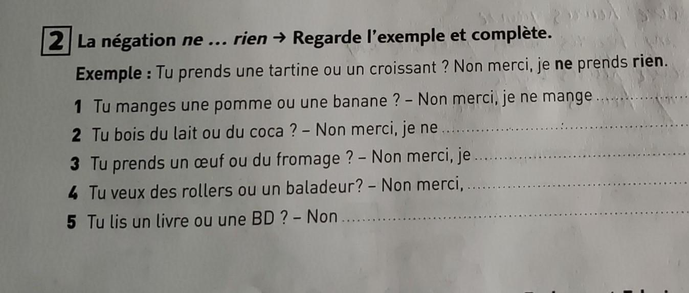 2 Buvez-vous du lait ou du cola ? - Non, merci, je ne bois pas.