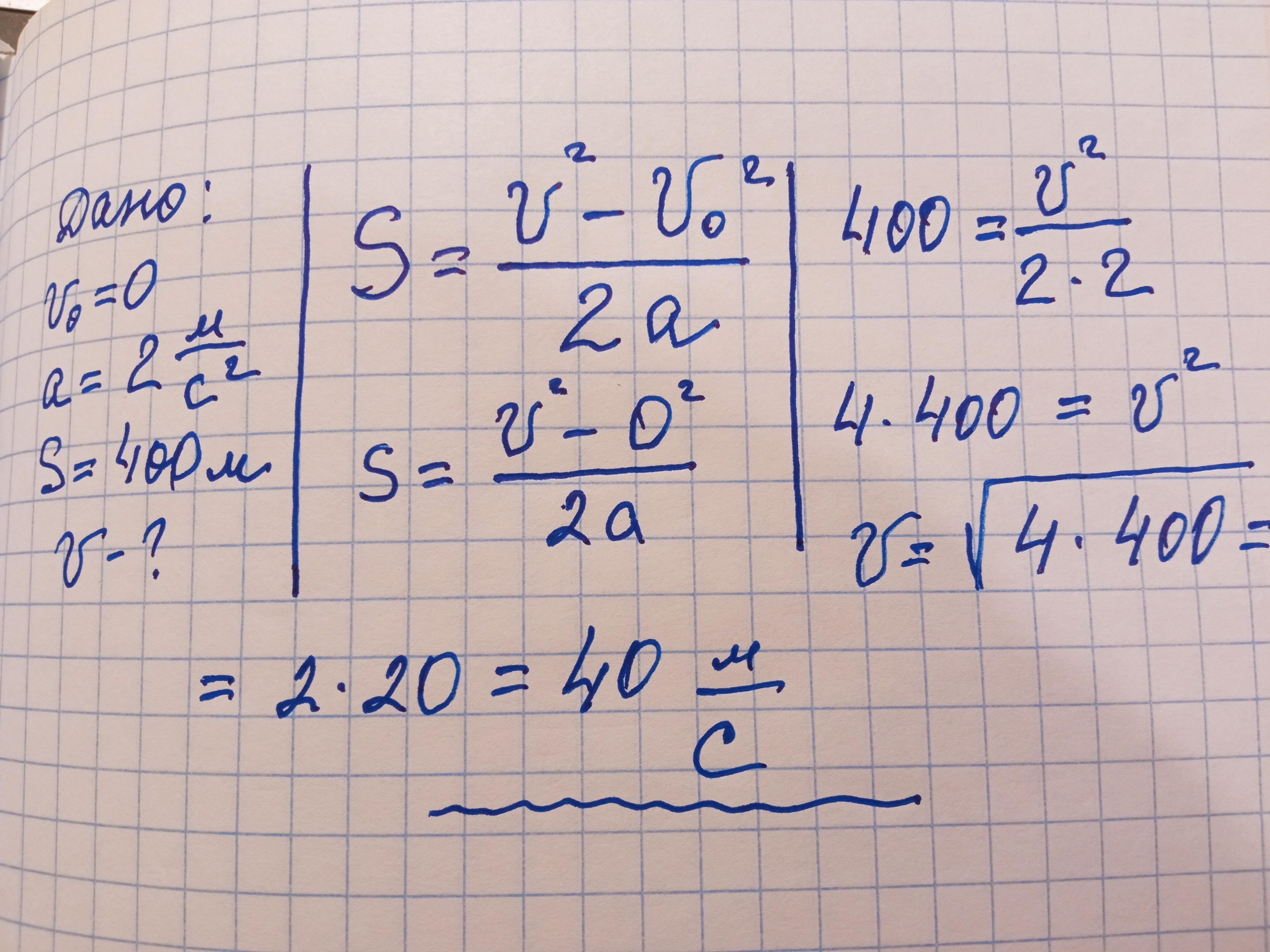 Тіло починає рухатися зі стану спокою з прискоренням 2 м/с^2. Якої швидкості набуде тіло, коли воно подолає шлях 400 м ? ДОЮ 100БАЛОВ