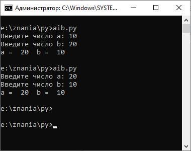 Задание 2. Упорядочите значения двух переменных а и b Постановка задачи: если для исходных значений переменных справедливо отношение а≤b (например, a = 10, b = 20), то выполнить обмен значениями. Для обмена значений необходимо использование третьей, вспомогательной переменной с. В алгоритме решения данной задачи используется неполное ветвление.