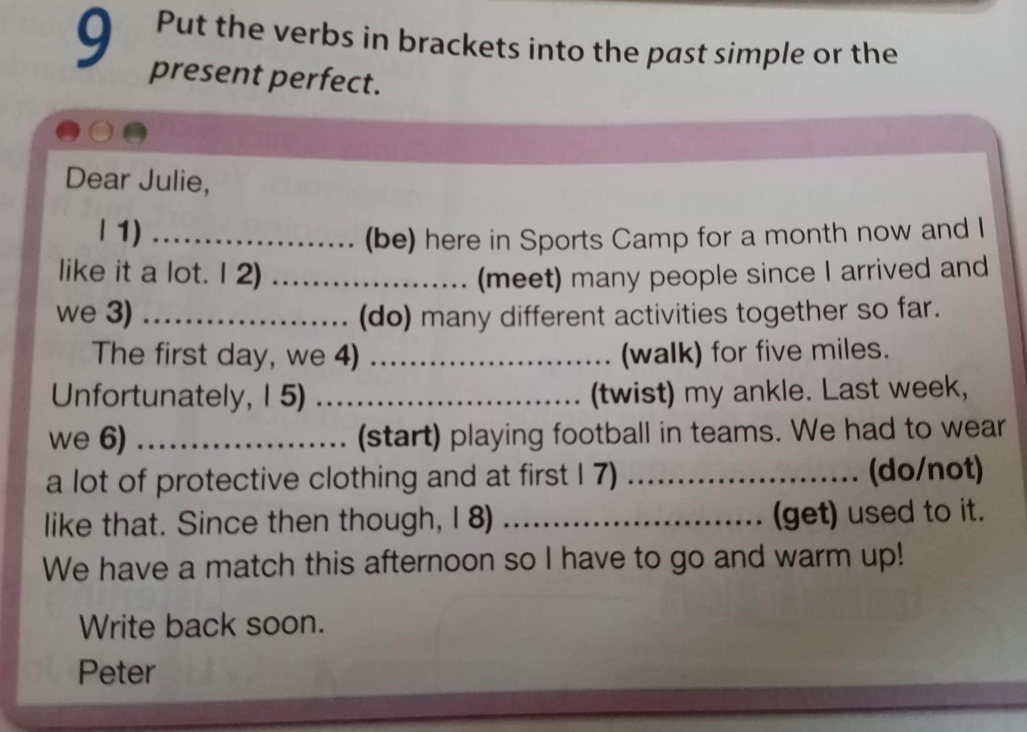 Dear Julie,1) I have been here in Sports Camp for a month now and I like it a lot.