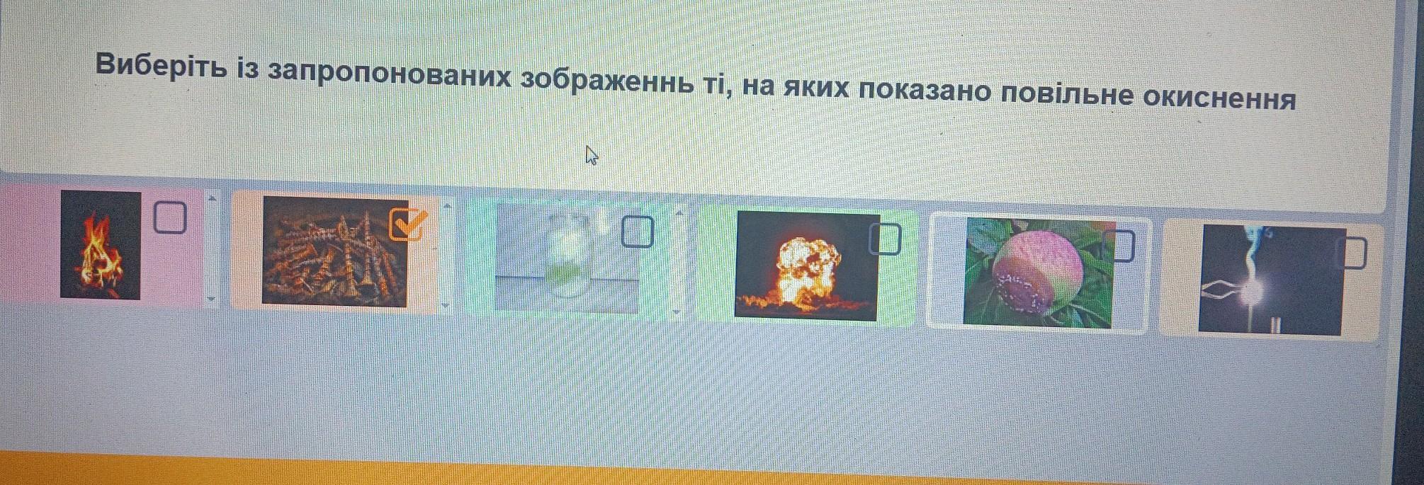 із запропонованих зображеннь виберіть ті, на яких показано повiльне окиснення. плиз хелп