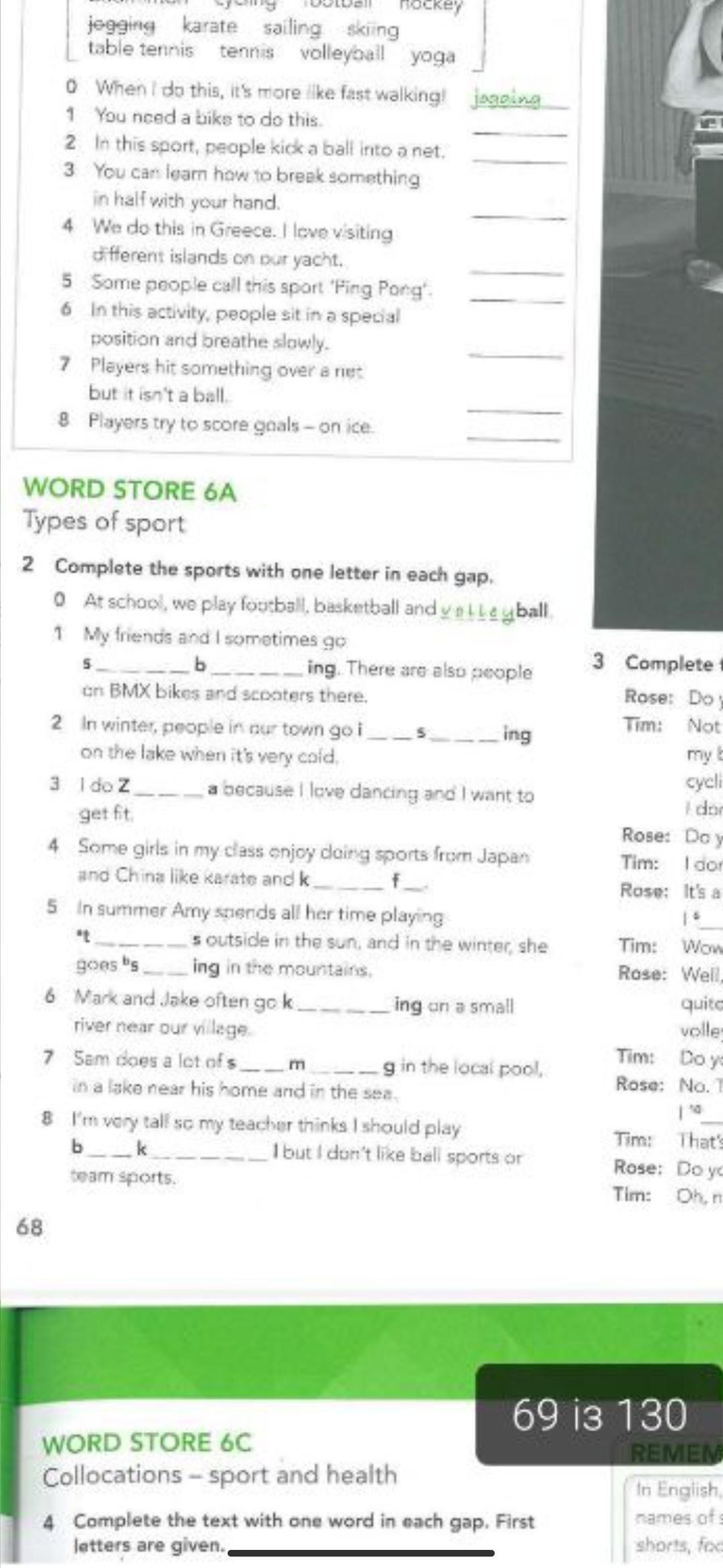 5.tennis, skiing
