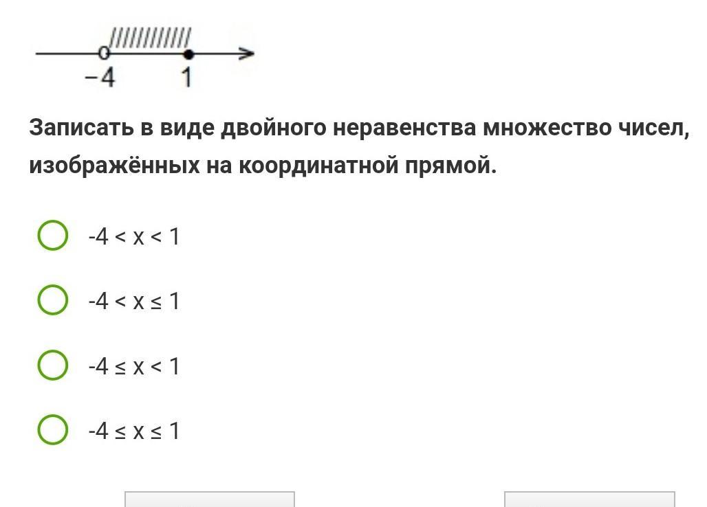 Записать в виде двойного неравенства множество чисел, изображённых на координатной прямой.