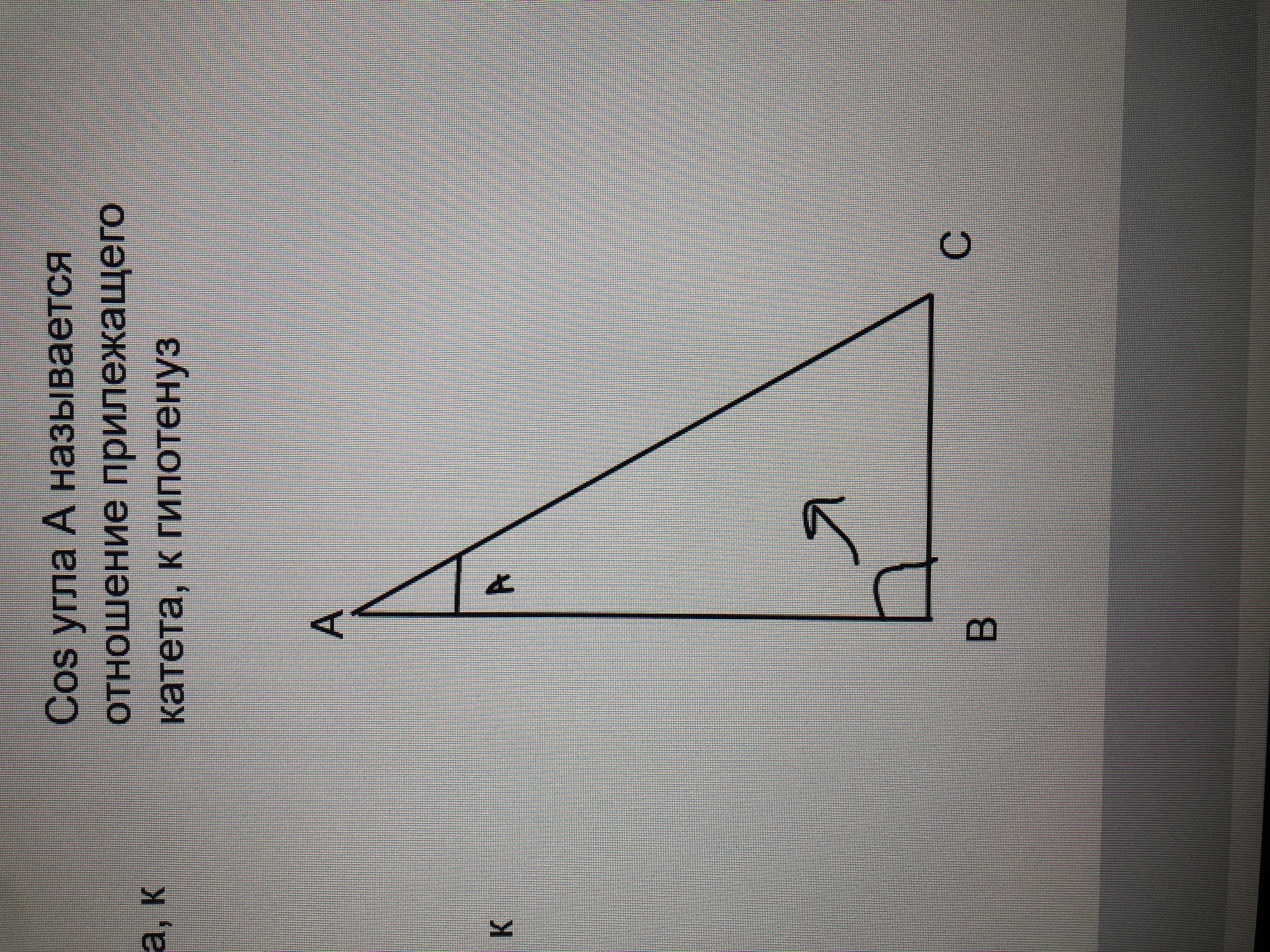 В прямоугольном треугольнике косинус острого угла равен отношению прилежащего катета к гипотенузе: cosA=AB/AC