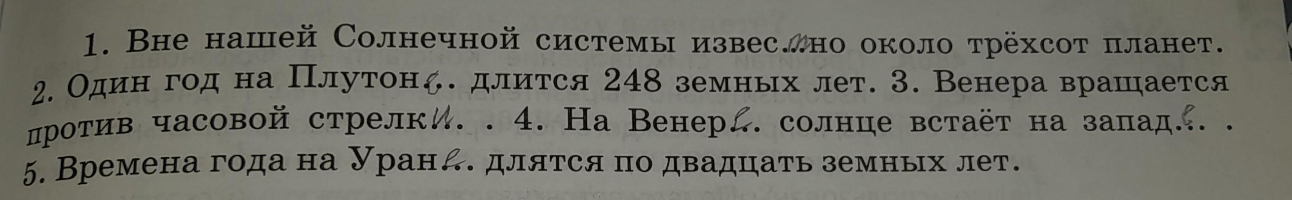 1. Вне нашей Солнечн/ой (ж.р., ед.ч., Р.п.) системы известно около трехсот планет.