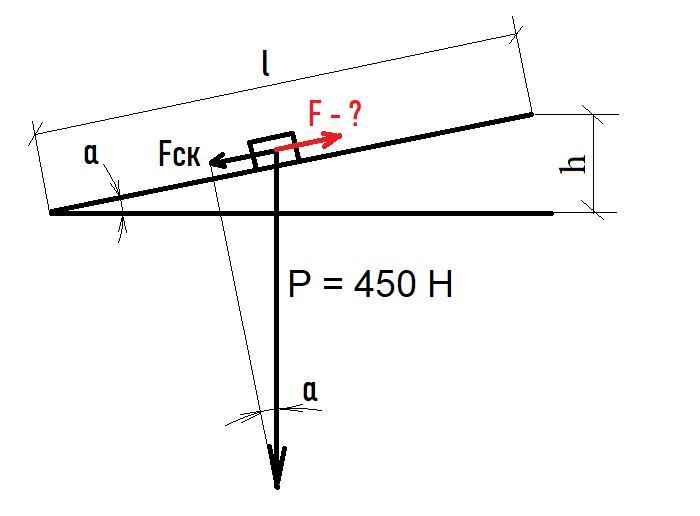 Объяснение: Смотрите рисунок. Красной стрелкой обозначена искомая сила. Поскольку в условии не сказано об ускорении, то груз поднимают с постоянной скоростью. Значит величина искомой сила равна силе Fск. Т.е. |F| = |Fск.| Fск = Р*sinα =