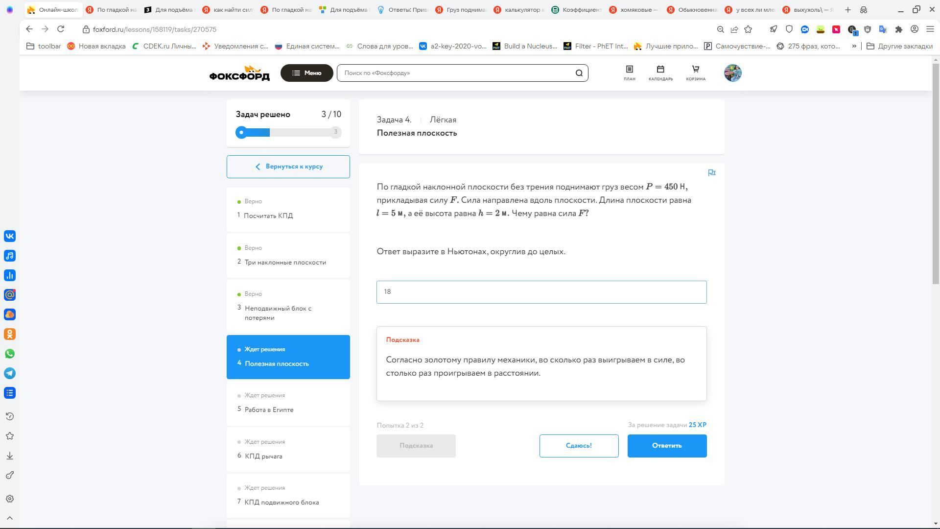 = Р*(h/l) = 450 * 2/5 = 180 Η.