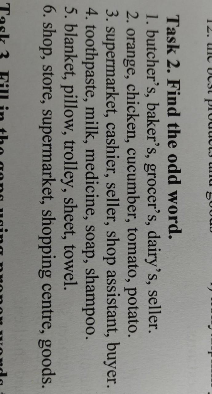 3. buyer (it is not a job or role within a shop, while the others are).