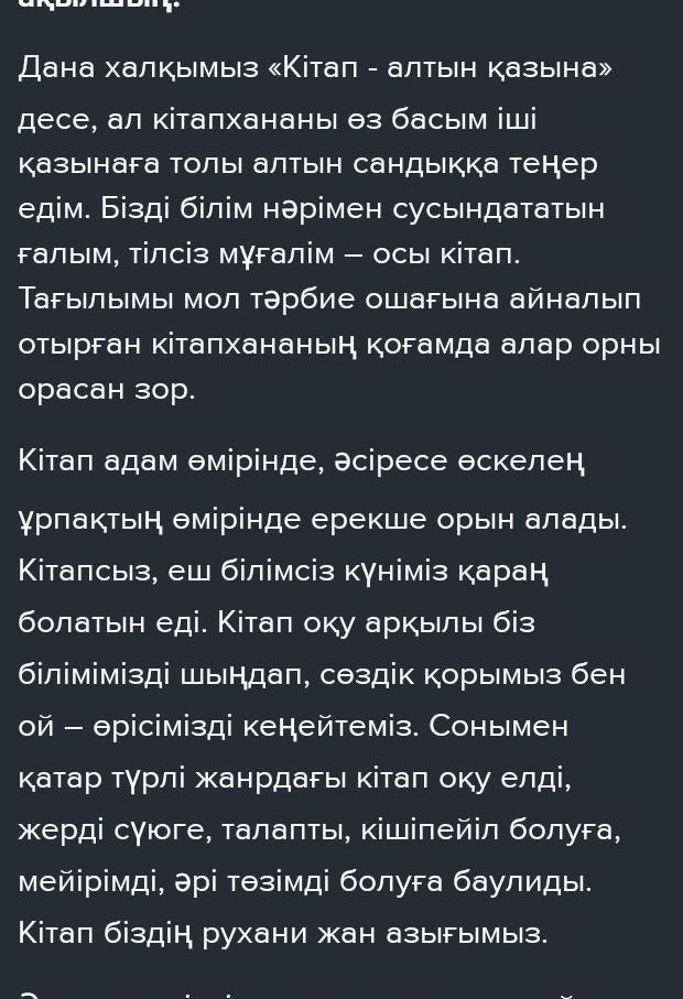 3. «Кiтап -досын, ұстазың, кеңесшің, ақылшың» тақырыбында жи- накы мәтін жазыңдар.(коротко)срочно! жас 50 балов