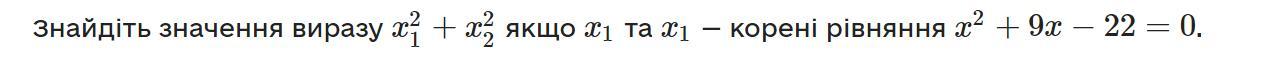 \displaystyle\bf\\x^{2} +9x-22=0\\\\Teorema \ Vieta \ :\\\\x_{1} +x_{2} =-9\\\\x_{1} \cdot x_{2} =-22\\\\\\x_{1} ^{2} +x_{2} ^{2} =(x_{1} + x_{2} )^{2} -2\cdot x_{1} \cdot x_{2} =(-9)^{2} -2\cdot(-22)=\\\\=81+44=125\\\\Otvet \ : \ x_{1} ^{2} +x_{2} ^{2} =125