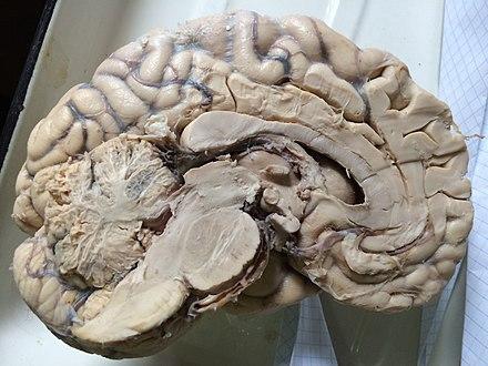 Описана характеристика відповідає корі головного мозку ссавців. Кора складається з сірої речовини і утворює характерні борозни та звивини на поверхні головного мозку, а біла речовина утворює велику кількість складок, які забезпечують ефективну комунікацію між різними частинами мозку.