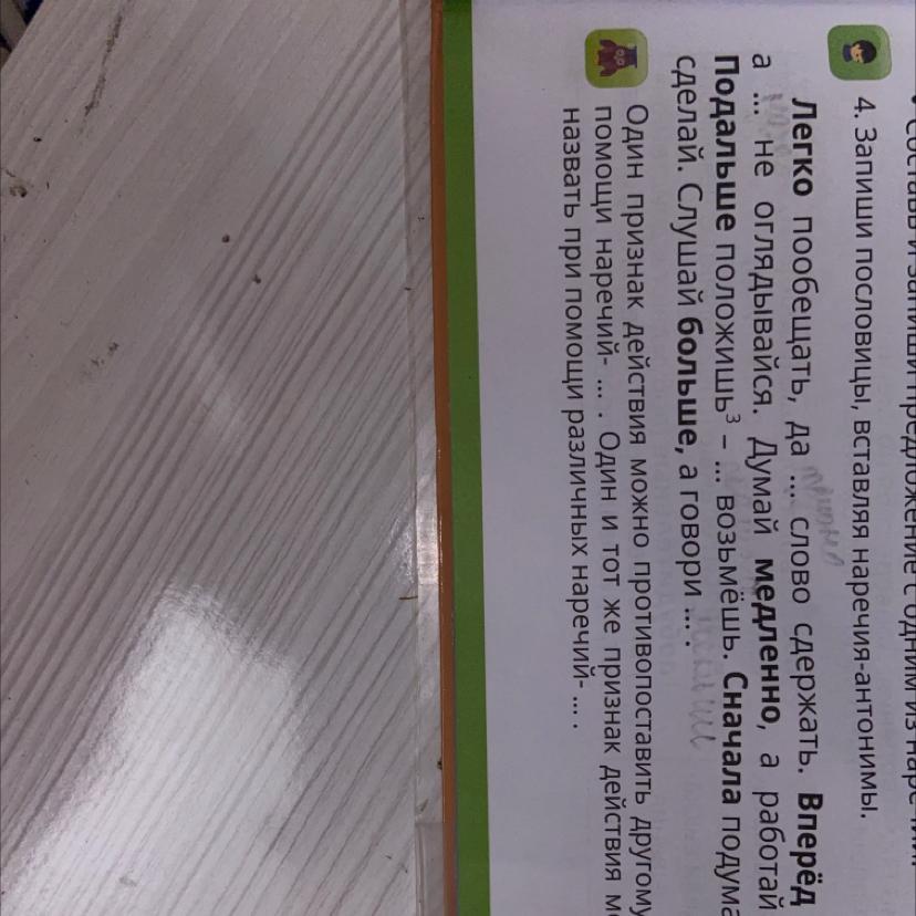4. Запиши пословицы, вставляя наречия-антонимы.